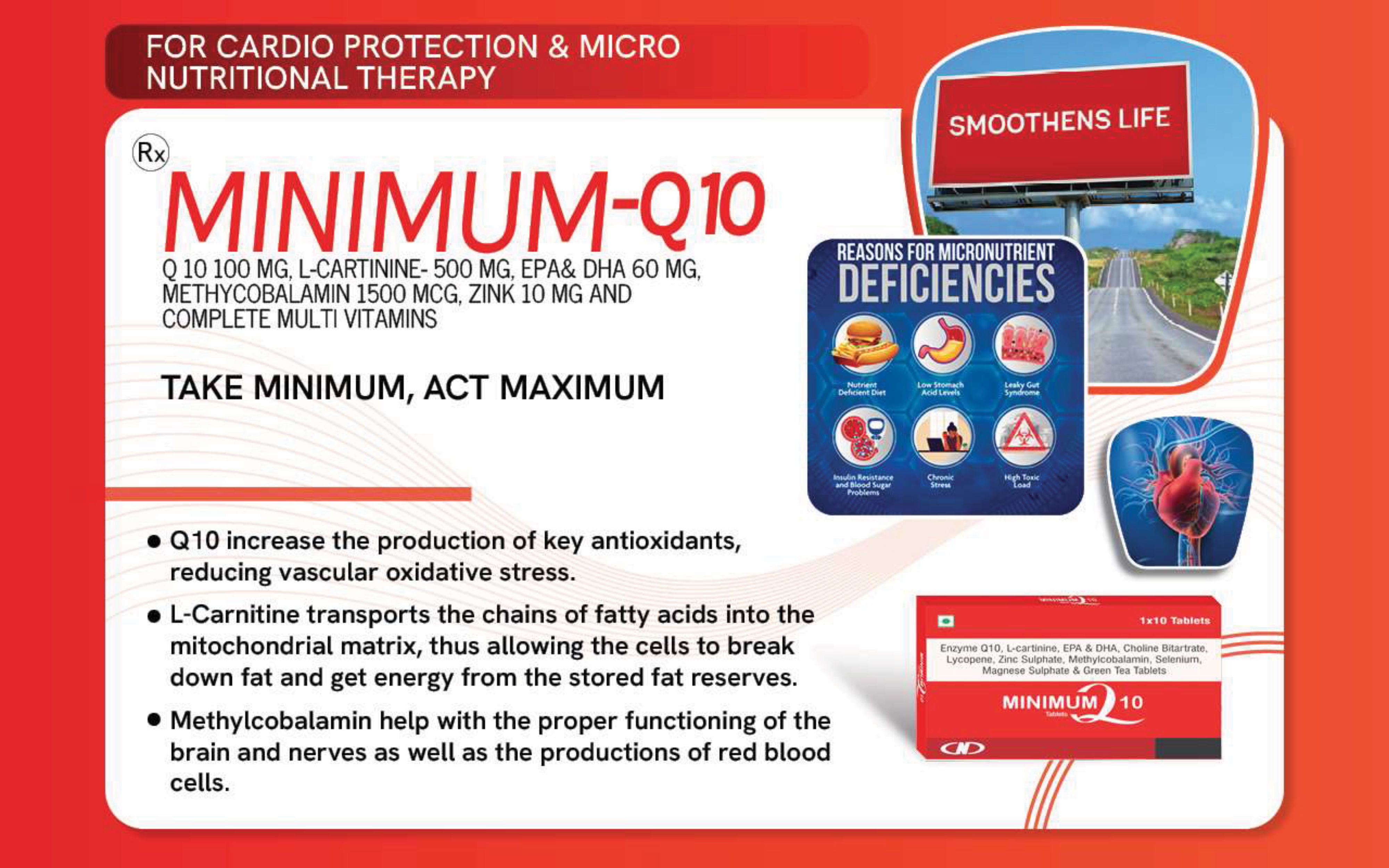 Q 10 100 MG, L-CARTININE-500 MG, EPA& DHA 60 MG, METHYCOBALAMIN 1500 MCG, ZINK 10 MG AND COMPLETE MULTI VITAMINS